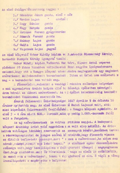 A fogyasztási szövetkezet krónikája