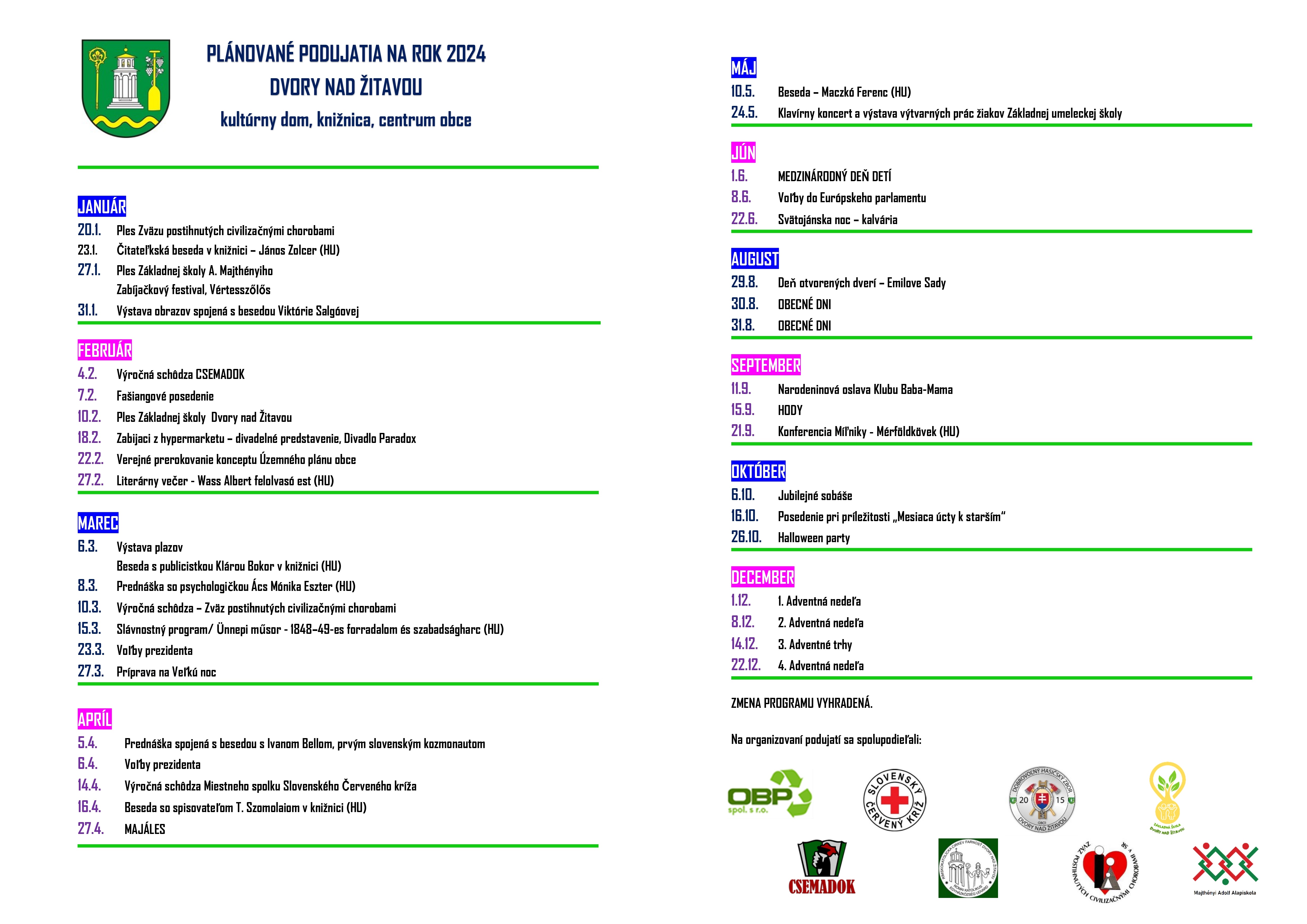 PLÁNOVANÉ PODUJATIA NA ROK 2024
