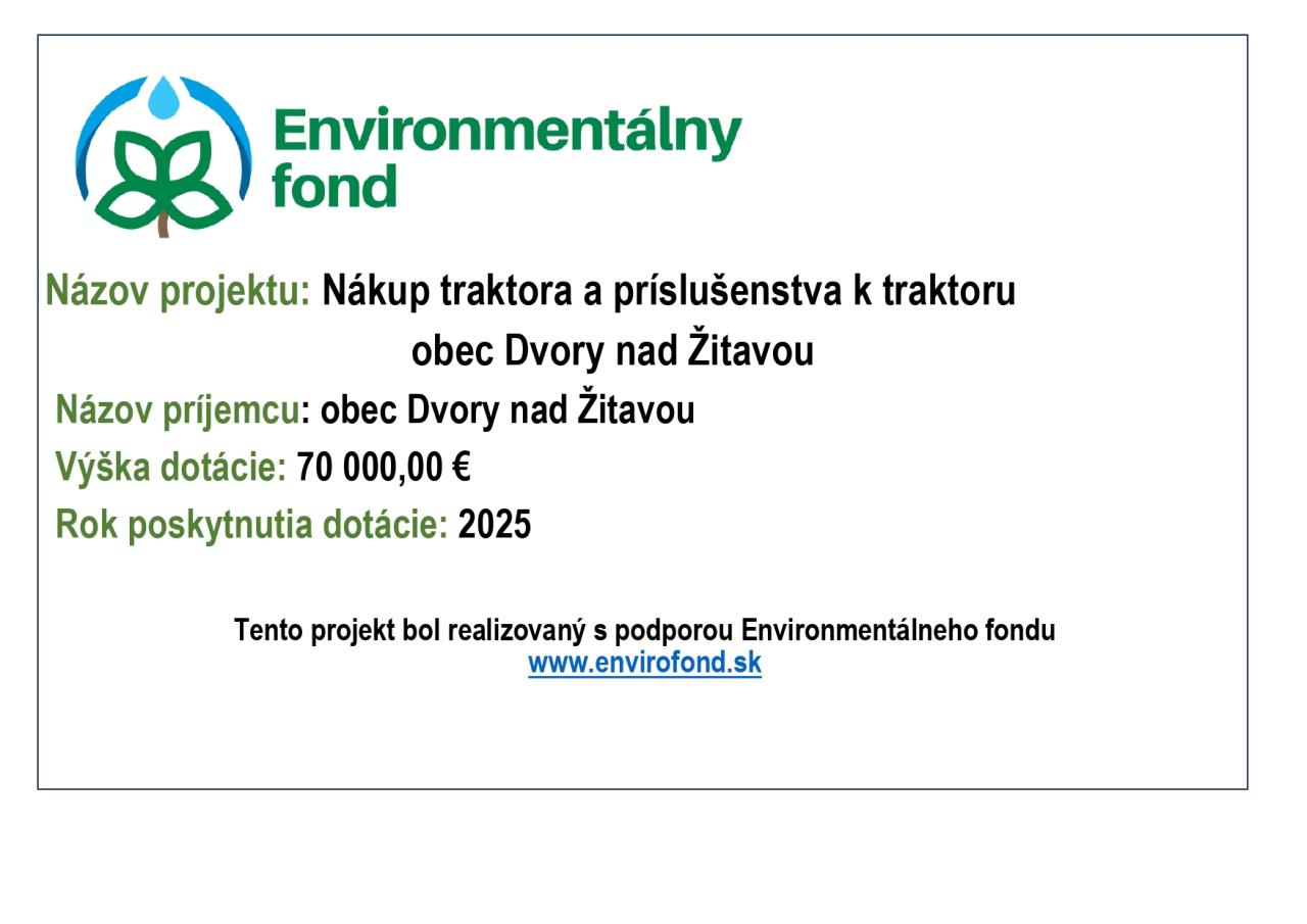 Nákup traktora a príslušenstva k traktoru obec Dvory nad Žitavou