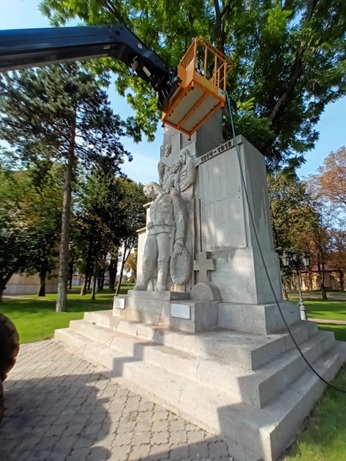 Za uplynulý čas sa na povrchu vplyvom parkovej vegetácie, cestnej premávky a vplyvom počasia vytvorili nánosy, ktoré dlhodobo neprospievali povrchu materiálu. Na pamätníku boli viditeľné praskliny a známky zvetraného povrchu, ktoré bolo treba, kvôli zachovaniu diela zastaviť, nakoľko poveternostnými vplyvmi by boli známky zvetrávania časom rozsiahlejšie. Z Ministerstva obrany Slovenskej republiky sme získali finančnú podporu, z ktorej sme pripravili a tlakovo umyli povrch, efektívne chemicky očistili, detailne revitalizovali plastiku, odstránili vodný kameň, modelovali a opravili chýbajúce a poškodené časti, brúsili povrch a impregnovali.